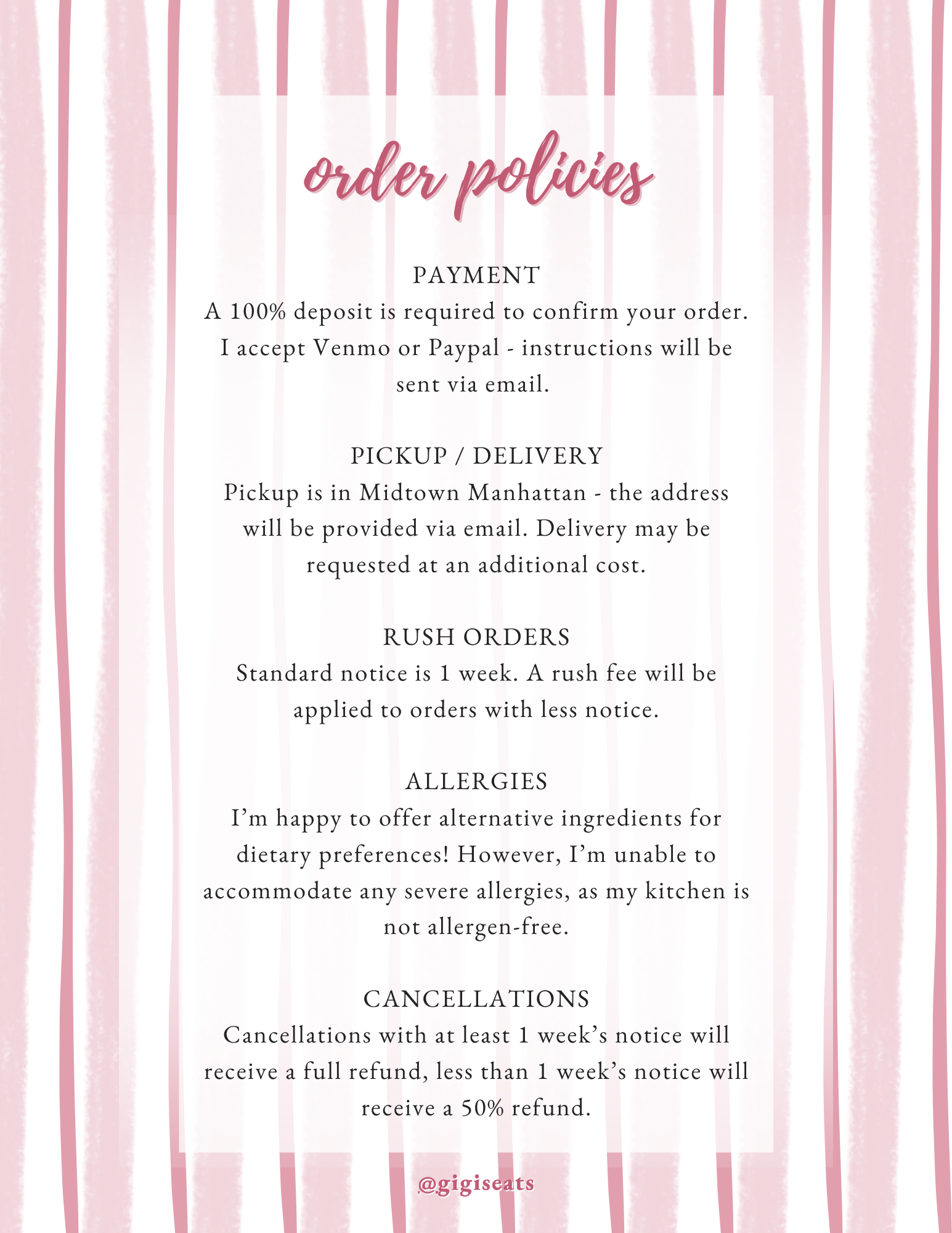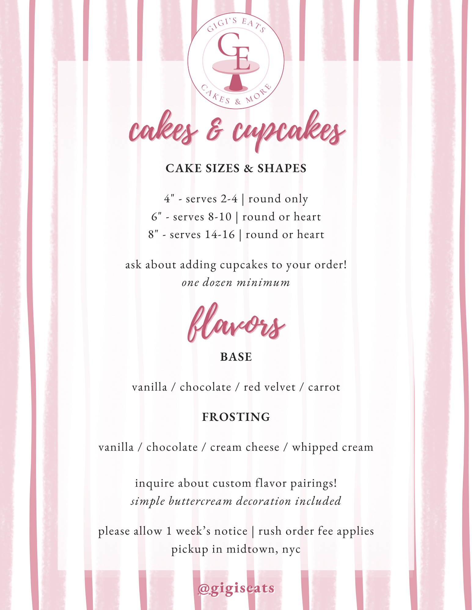Each cake is baked from scratch just for you. I take a limited number of orders per month due to the time and attention I dedicate to each custom cake.